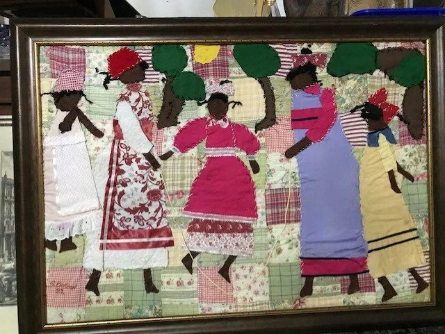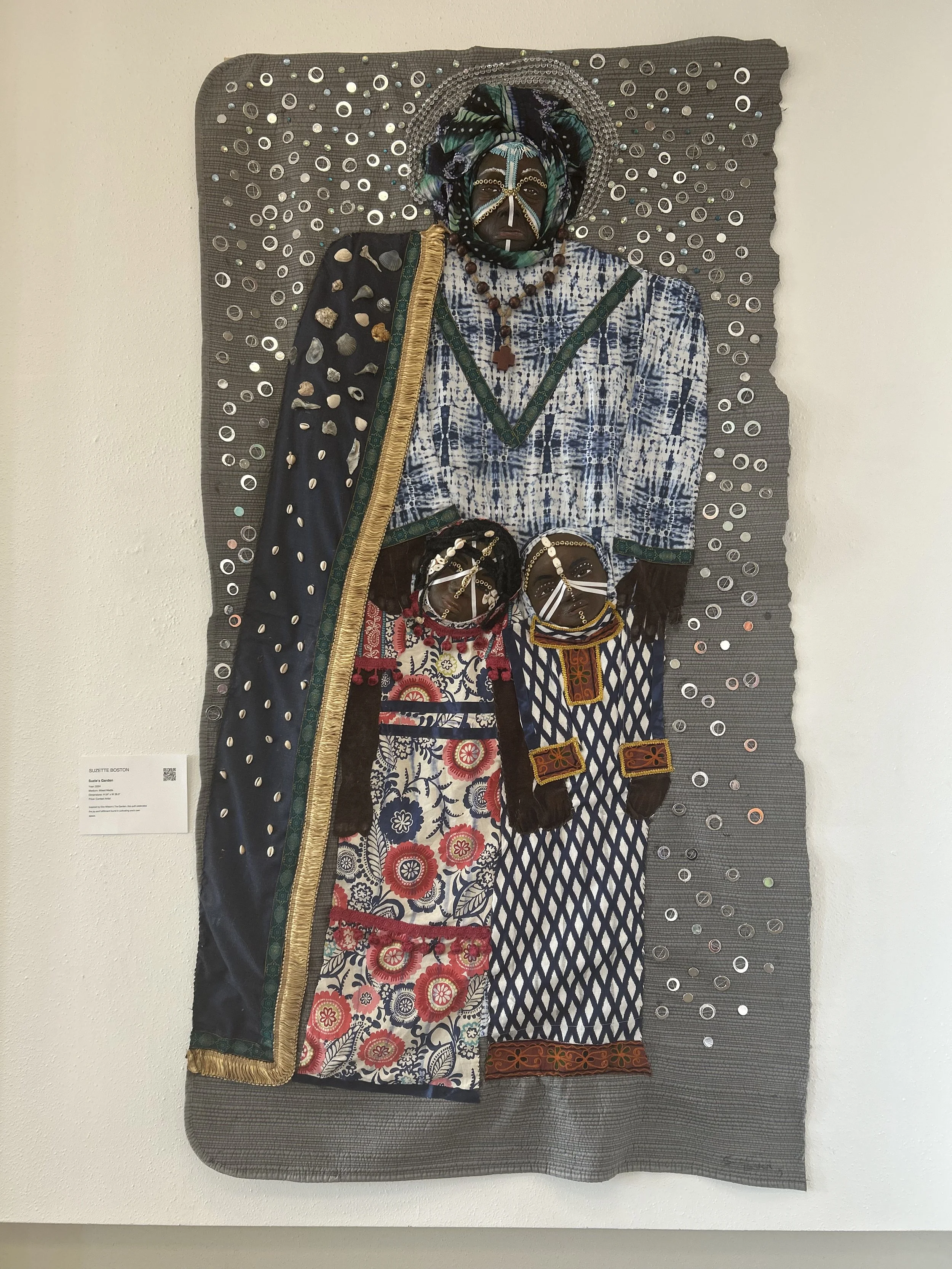 Blending fabric and narrative, Suzette creates layered compositions that are both deeply personal and universally resonant. Her pieces often depict faceless figures, symbolic of collective memory, ancestral presence, and the stories passed down through generations.